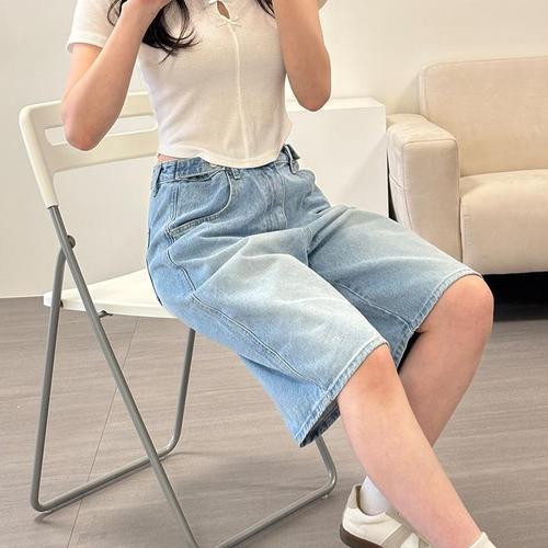 [신상오픈런]여성 비죠 버튼 청반바지 연청색 Y2K 스타일 여름 버뮤다 데님 (36848358)
