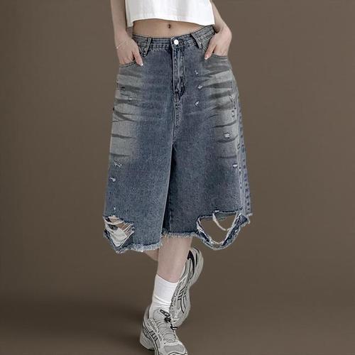 [신상오픈런]여성 Y2K 빈티지 버뮤다 청반바지 여름 데미지 워싱 (33434835)