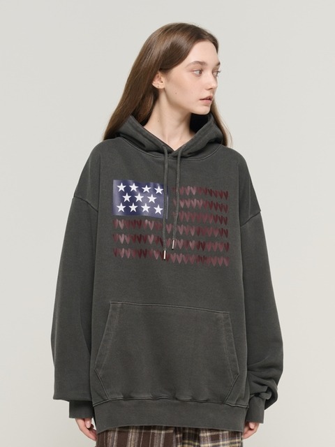 [카고브로스] 아메리칸 플래그 피그먼트 후드 티셔츠 (차콜)