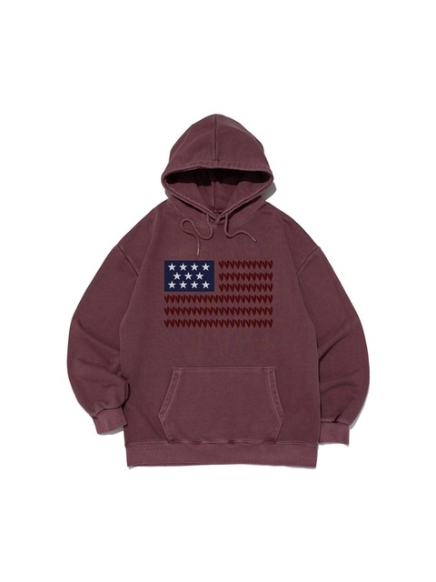 [카고브로스] 아메리칸 플래그 피그먼트 후드 티셔츠 (와인)