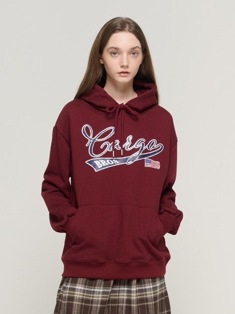 [카고브로스] 빈티지 로고 후드 티셔츠 (와인)