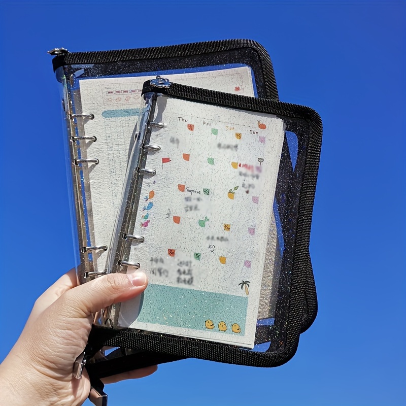 TEMU 투명 PVC 지퍼 바인더 6홀 1개입, A5/A6 사이즈에 적합, 저널, 노트북 및 사무용품 정리에 완벽. 사진 카드 컬렉션을 위한 훌륭한 선물