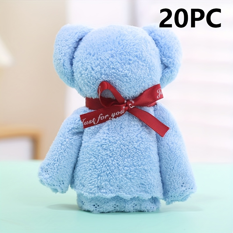 TEMU 결혼식, 생일, 파티용 20개의 플러시 코랄 플리스 곰돌이 타월 - 부드럽고 흡수력 좋은 선물 아이디어, 두꺼운 사각형 귀여운 곰돌이 타월, 높은 미적 가치