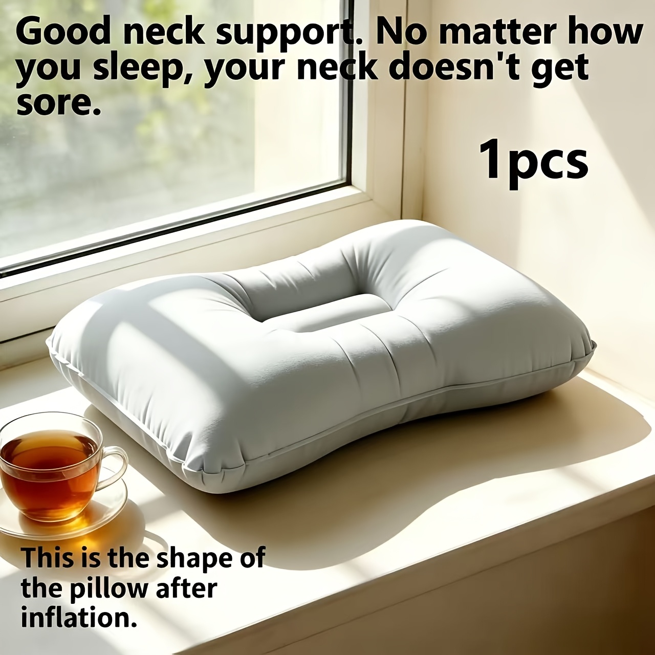 TEMU 경추 베개 - 목 지지 베개, 옆으로 자는 사람 및 등으로 자는 사람에게 적합, 인체공학적 디자인, 3D 퀼팅 표면, 통기성 원단, 이상적인 크리스마스 선물, PVC 소재, 목 보호 및 수면 편안함, 목 베개