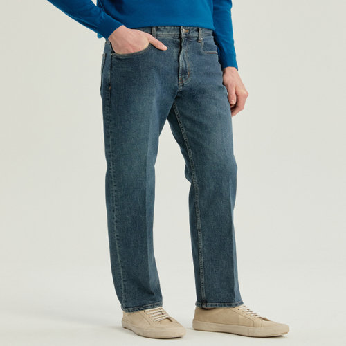 블루 테이퍼드핏 스트레치 데님 팬츠 (DMPA5AC41B2)