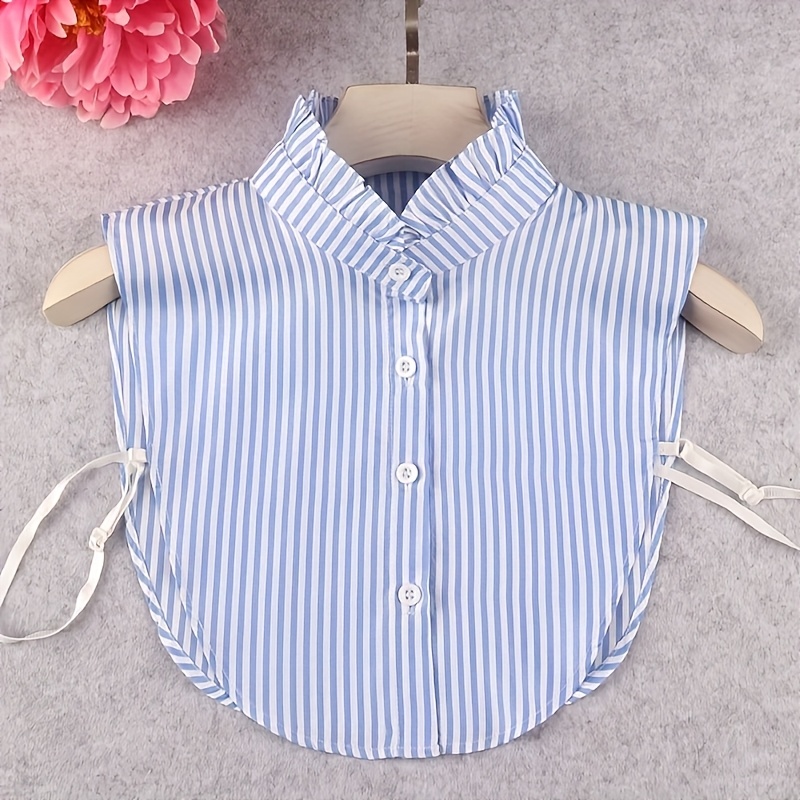 TEMU 1 여성용 탈착형 스탠드 칼라 - 블루 & 화이트 수직 , 폴리에스터 세미셔츠 인서트, 버튼 프론트 & 조절 가능한 타이, 레이어링 또는 단독 착용에 완벽, 패셔너블 레이어링 아이템 | 우아한 룩 | 고품질 제작