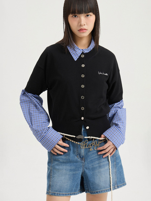 [럭키슈에뜨] Essential Half Sleeve Knit Cardigan (black) LFWCM25410BKX
