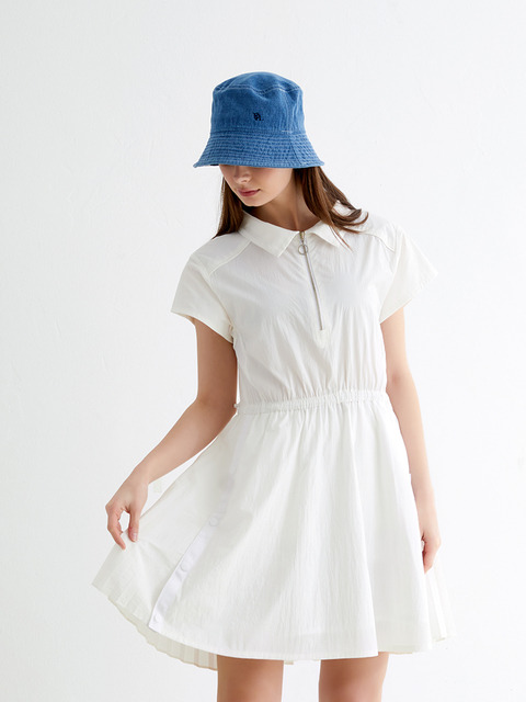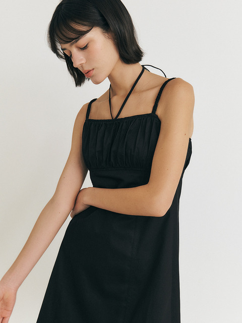 [매넌] 레미 셔링 디테일 에이라인 미니 원피스 블랙