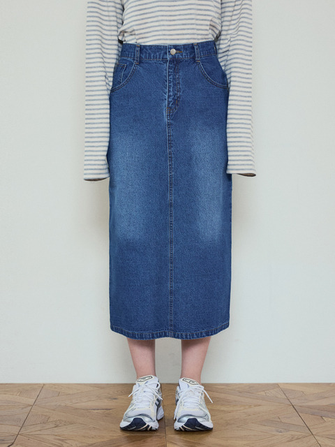 [웬즈데이오아시스 포 우먼] W/워시드 데님 롱 스커트_Blue(WC25_SK01)
