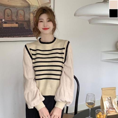 [BZJL8V2E_4C]스트라이프 스타일 니트 1P 긴팔 데이