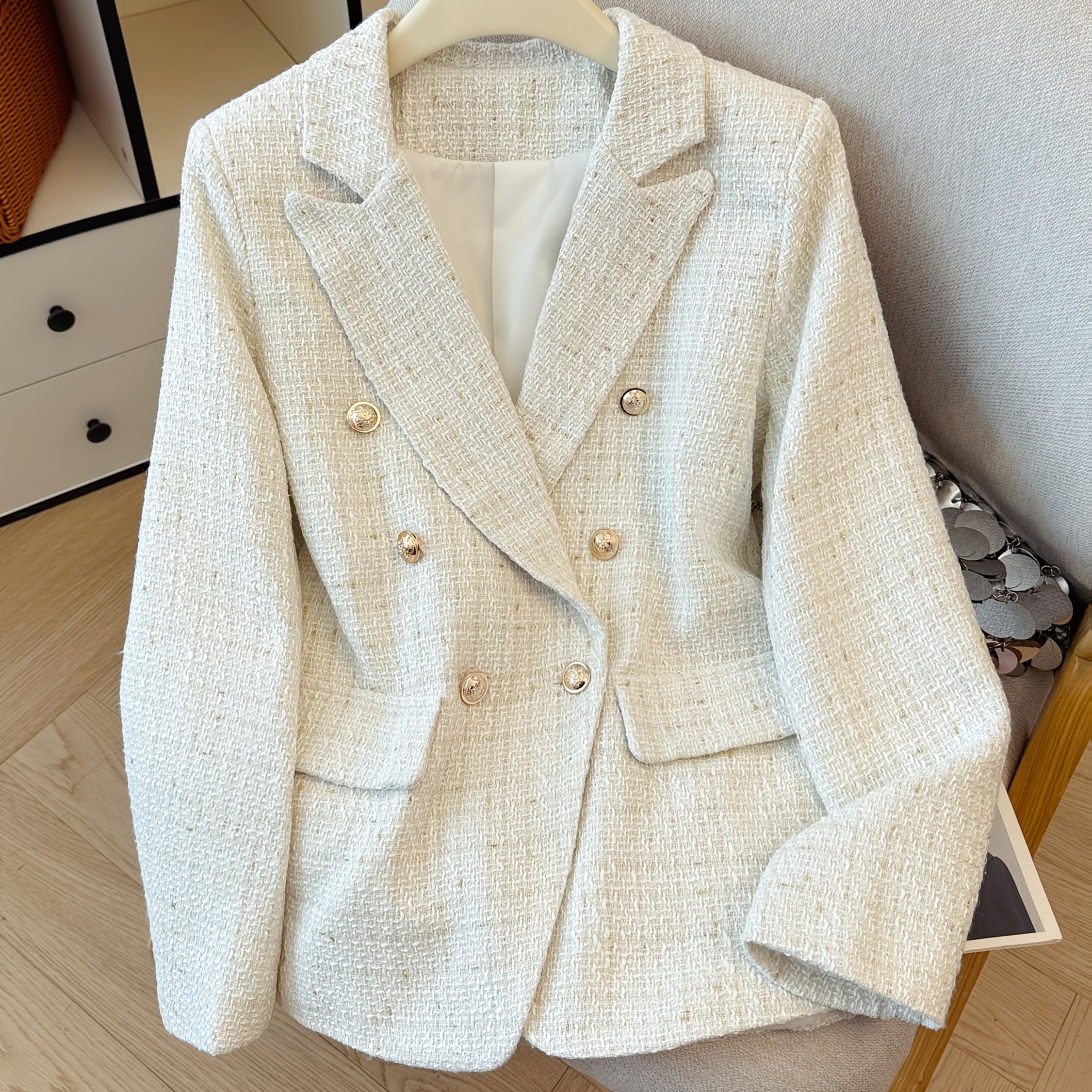 TEMU 여성용 우아한 베이지 재킷 - 사계절 내내 착용 가능한 버튼 프론트 코트, 오피스 & 웨딩 트래블 , 일상 및 공식 행사용 - 튼튼한 여성 아우터웨어, 클래식 디자인, 세련된 마감, 다목적 레이어링 피스