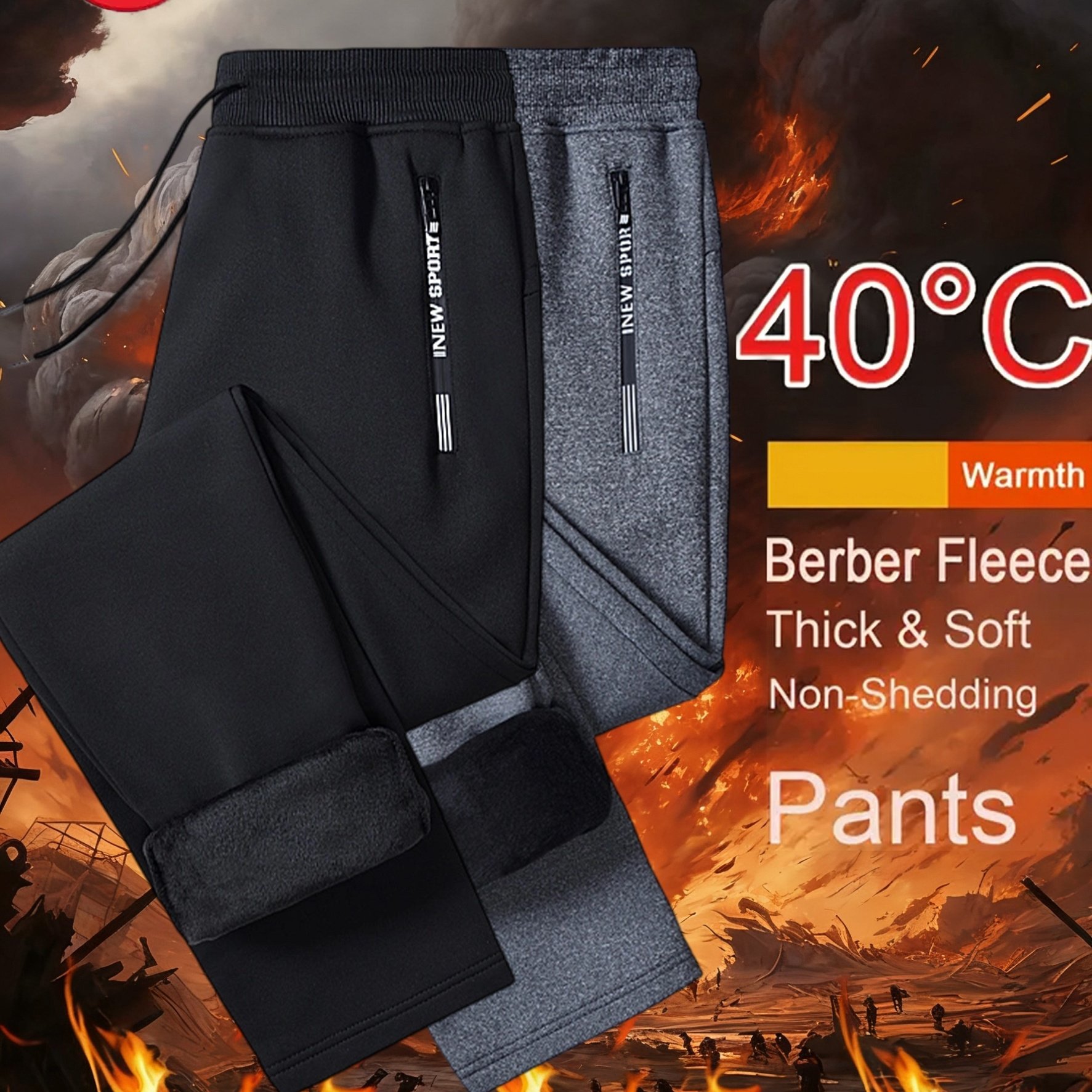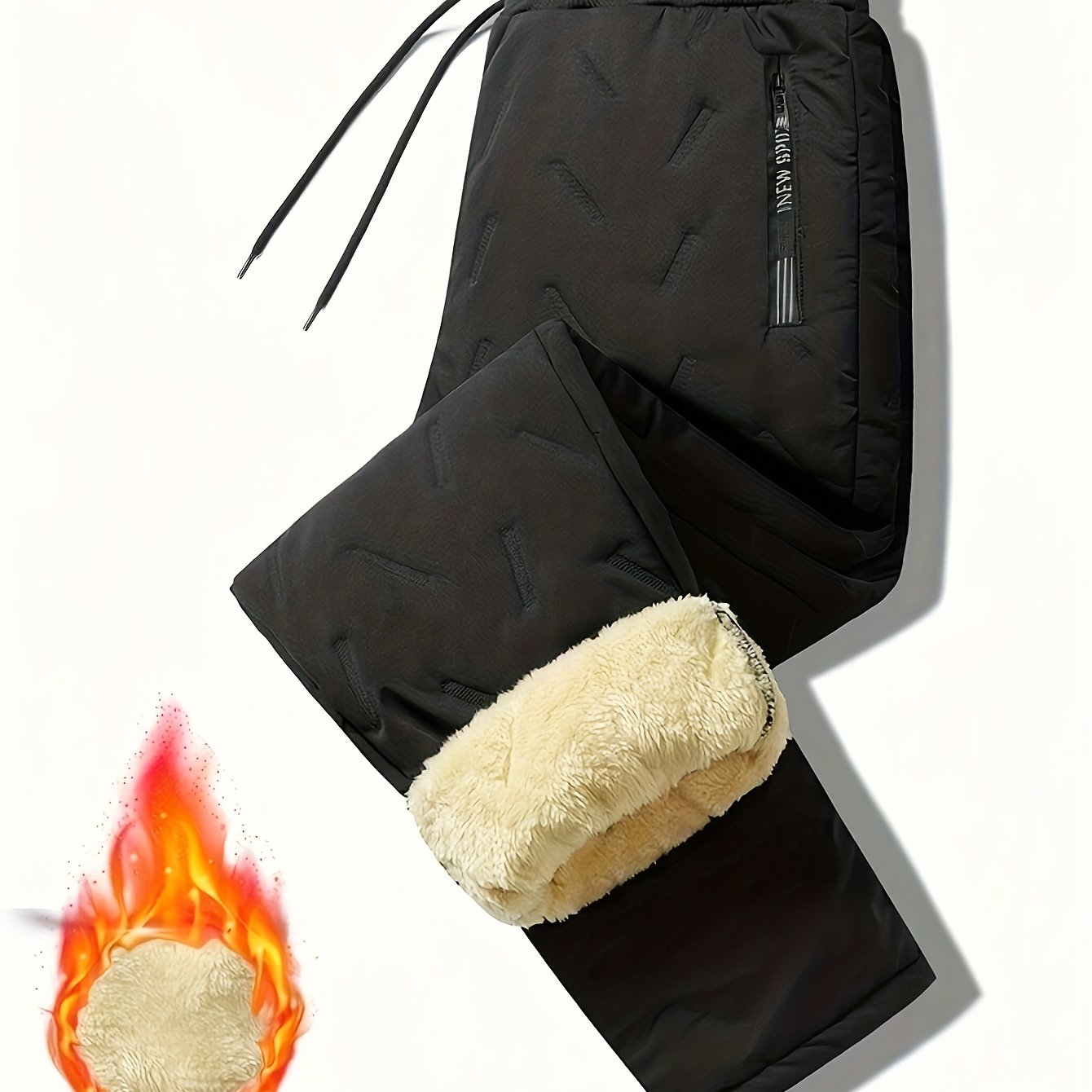 TEMU 남성용 헤비듀티 겨울 팬츠 - 플리스 안감 두꺼운 보온 바지, 스키·스노보드·아웃도어 활동용, 포켓 & 지퍼 없는 디자인 (지퍼 없음) - 추운 날씨 캐주얼 웨어 (손세탁/드라이클리닝)