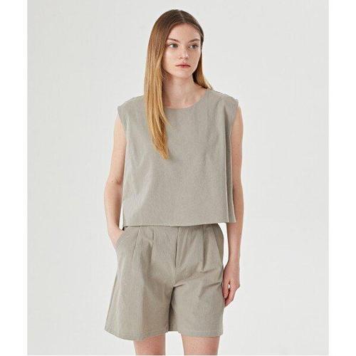 [GGPX]민소매 크롭 티셔츠 벨티드 숏 팬츠 셋업 (GOBOW034D)