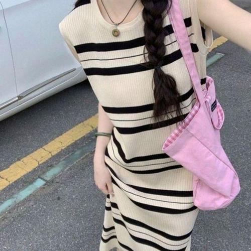 [에이치플러스몰]스트라이프 여자 데일리 롱 나시 클래식 원피스 H라인