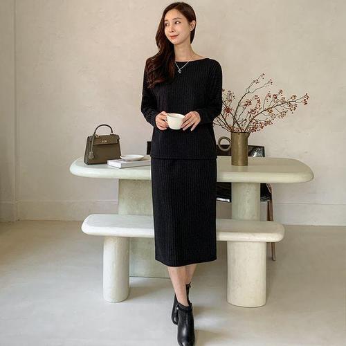 TKX 여성 니트 롱 스커트 간절기 심플 미디스커트 스타일리쉬 패션 신축성 좋은 H라인 치마 KN53