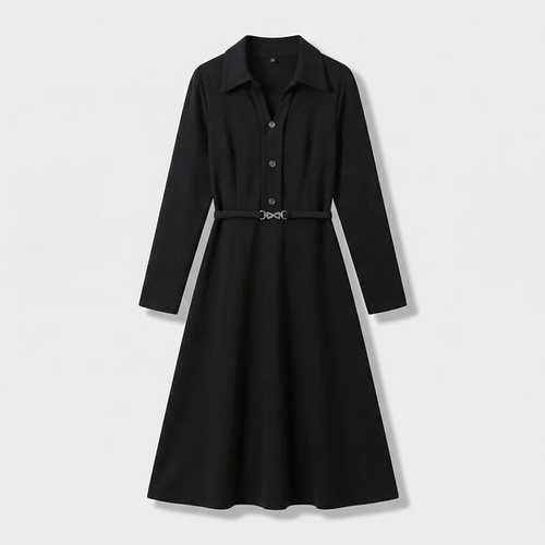셔츠 카라 허리 끈 롱 원피스 (TKOAB2503)