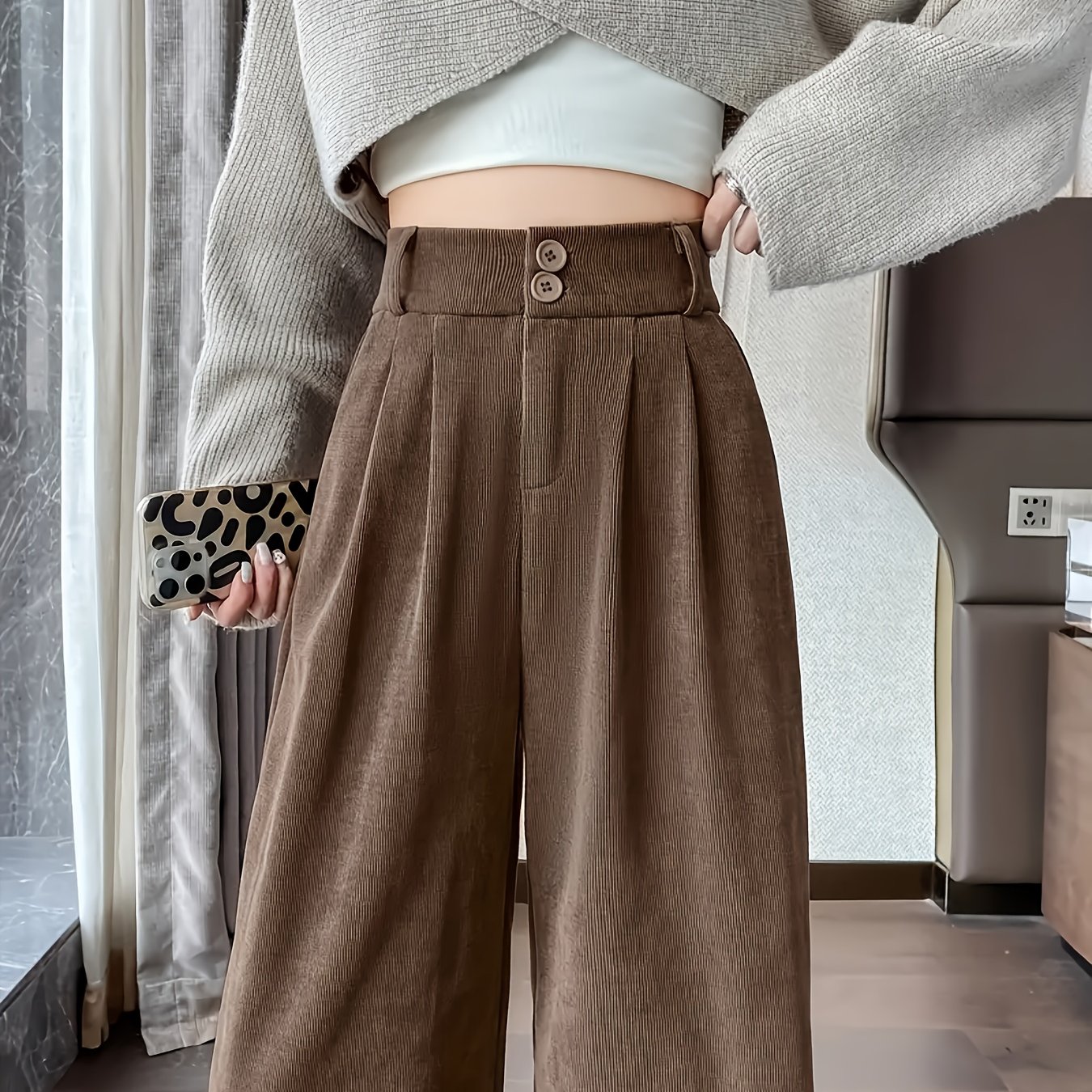 TEMU 여성용 와이드 레그 팬츠 - 버튼 클로저가 있는 우아한 트라우저, 사계절용 정장 및 일상용 여성용 바지, 사무실, 파티, 캐주얼 의상 - 부드럽고 따뜻한 하의, 파티 복장, 코듀로이 질감, 풍부한 색상, 맞춤형 핏, 쇼퍼스