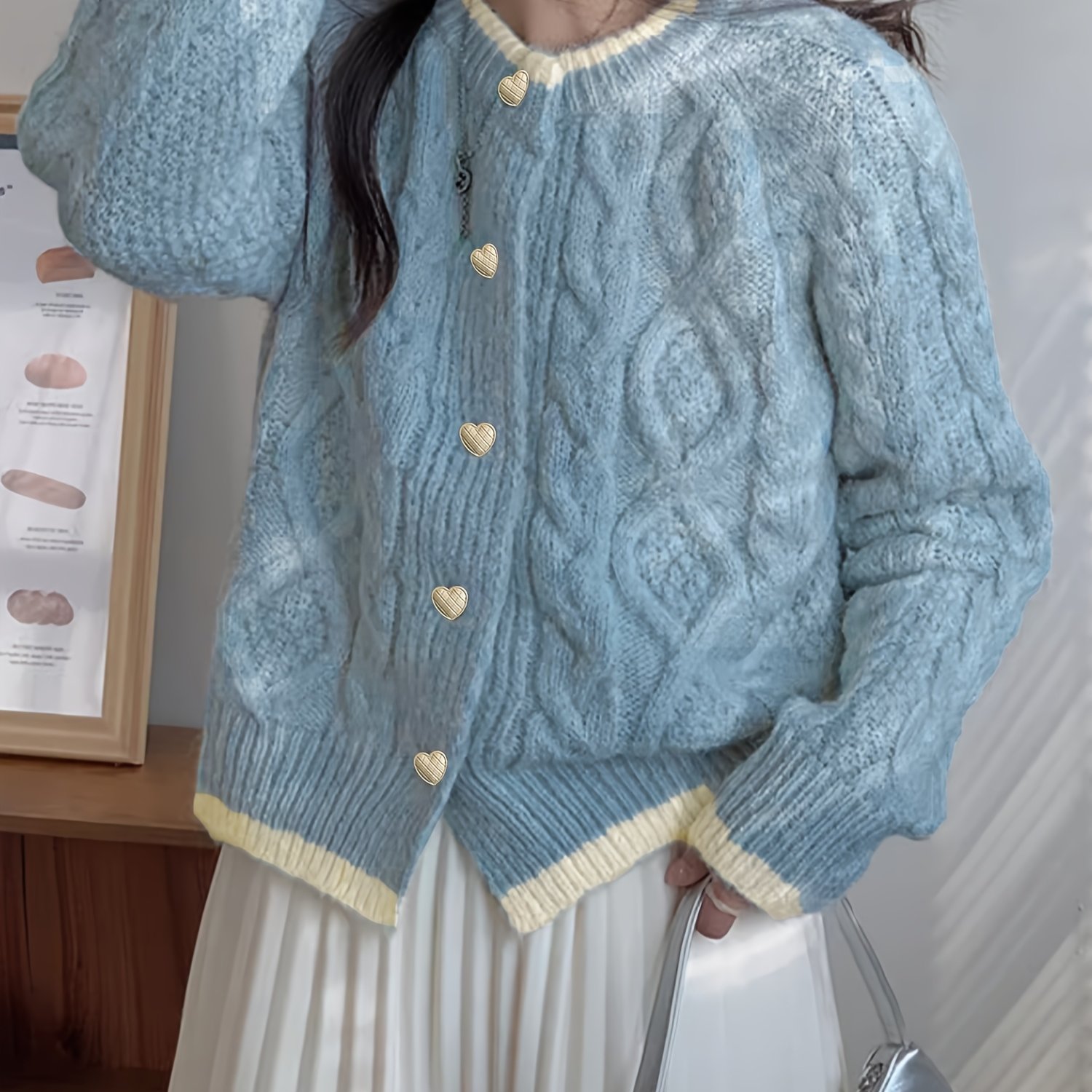 TEMU 여성을 위한 독특한 가디건이 특징인 새로운 가을/겨울 컬렉션입니다. 편안한 스타일로 디자인되었으며, 가을/겨울 시즌에 잘 어울리는 블루 라운드넥 풀오버가 포함되어 있습니다. 이 다재다능한 아이템은 완벽합니다.