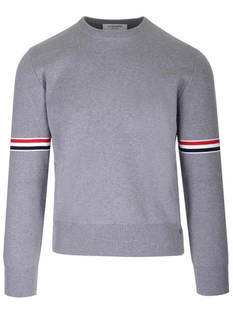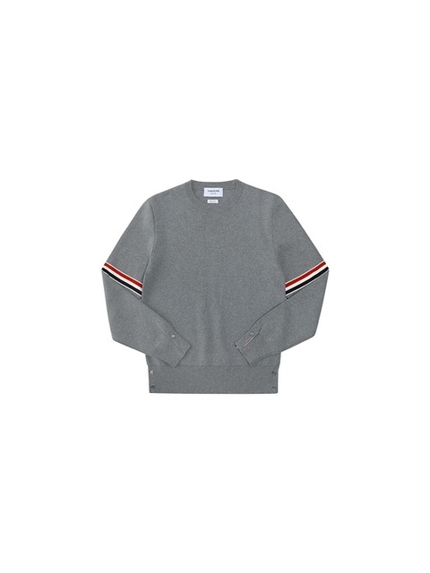 톰브라운 MKA326A Y3001 055 밀라노스티치 RWB 암밴딩 풀오버 크루넥 스웨트 라이트그레이 남성 니트