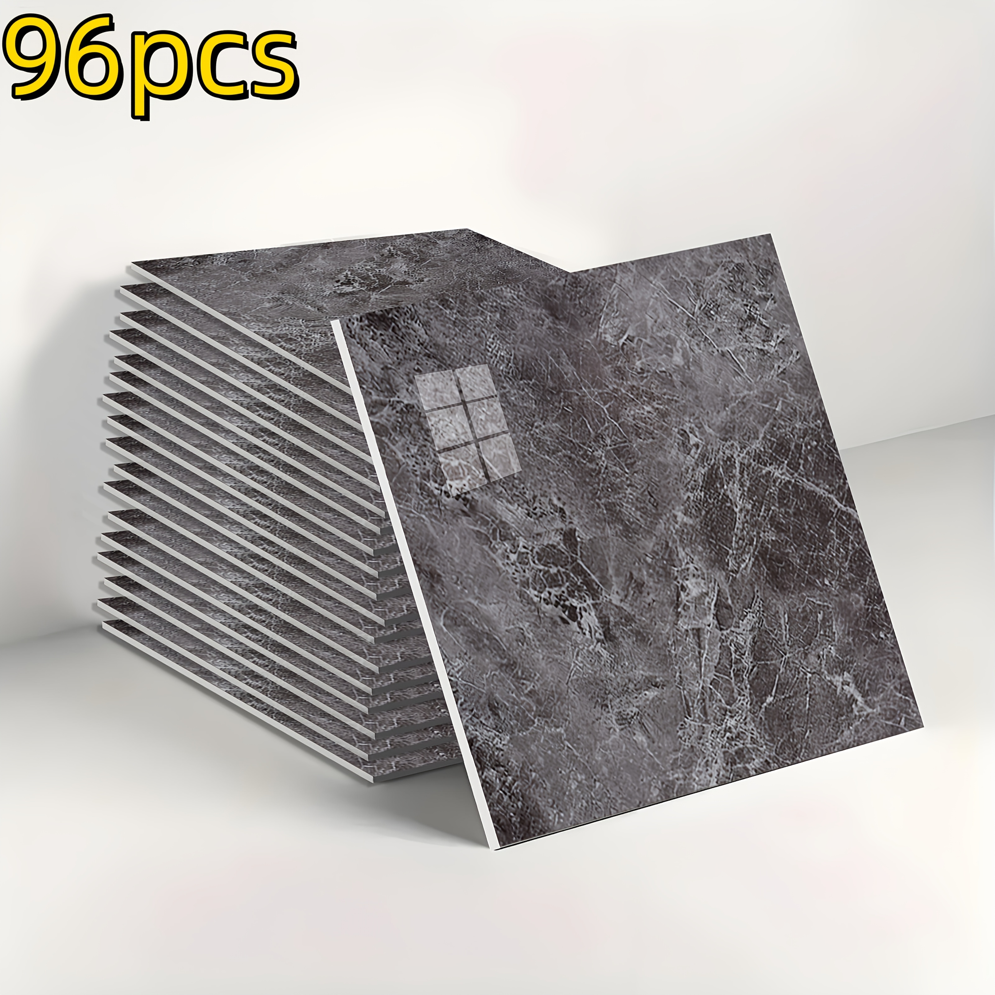 TEMU 48개/96개 빈티지 회색 대리석 타일 벽 스티커, 흰색 모조 세라믹 타일 장식 바닥 스티커, 검은색 벽 장식, 필 앤 스틱 무지 벽지, 욕실, 화장실, 거실 TV 배경 벽 장식에 적합|스티커