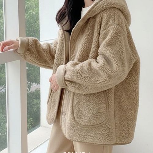 [보니제이]BONNIE J 러블리 뽀글이 루즈핏 후드 점퍼 숏자켓 점