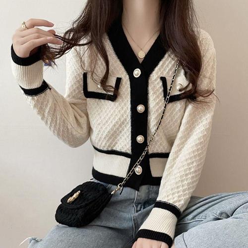 [오너클랜]인기상품 배색 포인트 진주단추 3컬러 가디건 [WFJ8PAO_251031]