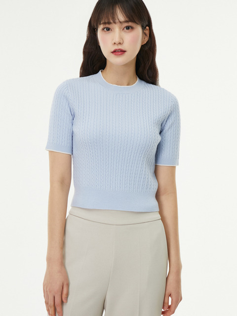 [랩] 잔꽈배기 라운드 반팔 니트 AQ1KH281