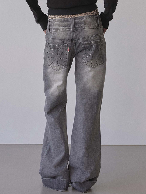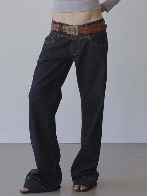 [스컬프터] Beaded Waist Denim Pants Mid Blue