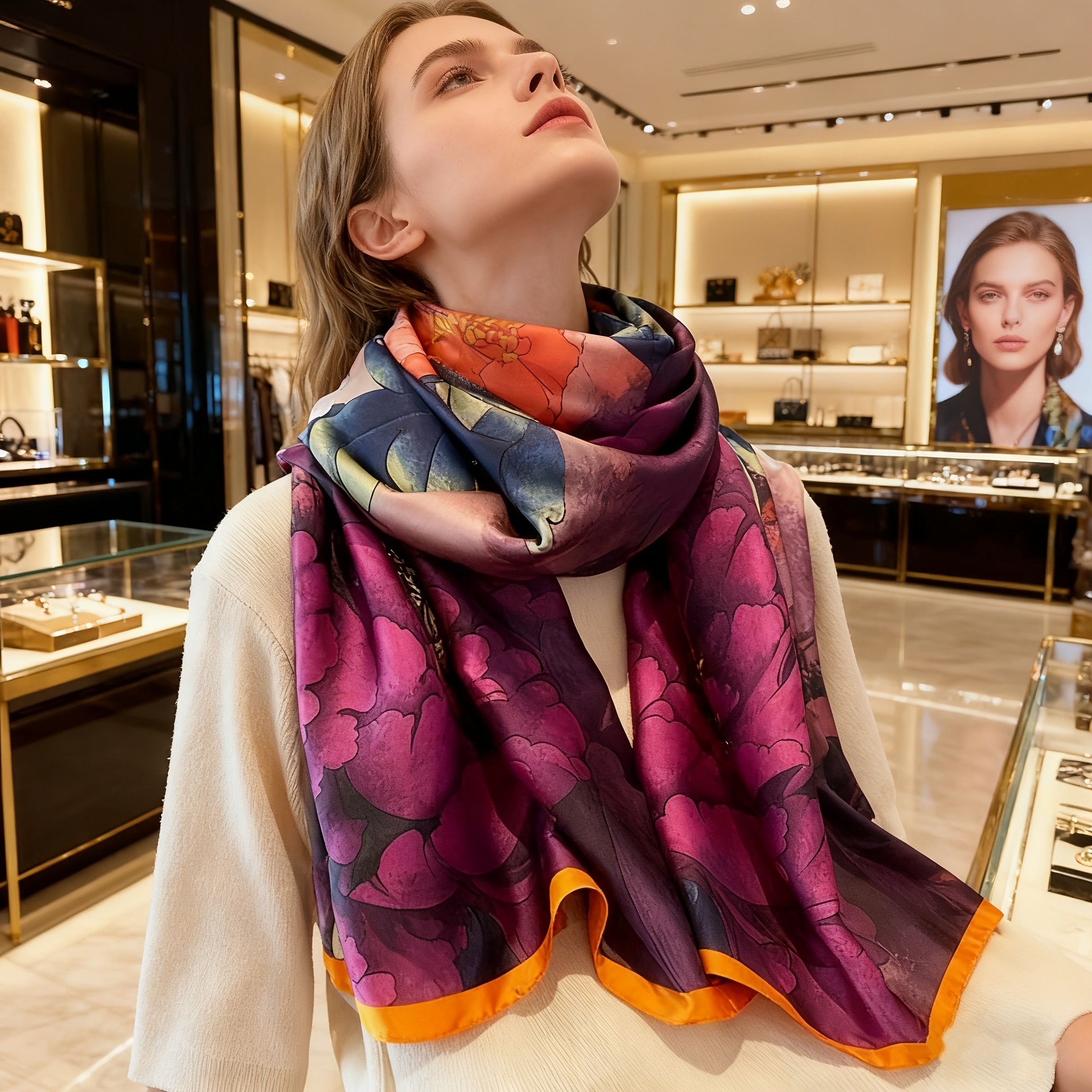 TEMU 여성용 우아한 해변 꽃과 새 프린트 스카프 - 가벼운 통기성 원단, 캐주얼 외출용 탄력 있는 신축성, 다재다능한 패션 액세서리, 스타일리시 아웃도어웨어, 부드러운 질감, 생동감 넘치는 컬러 믹스
