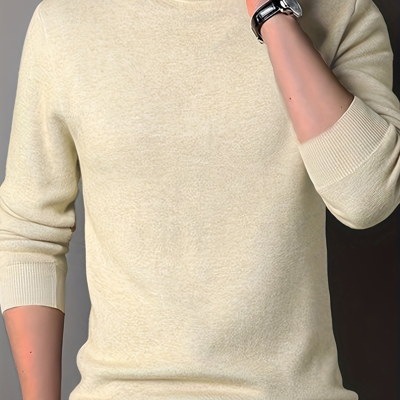 TEMU 신상 봄/가을 솔리드 컬러 세미 하이넥 슬림핏 남성 스웨터 - 청년용