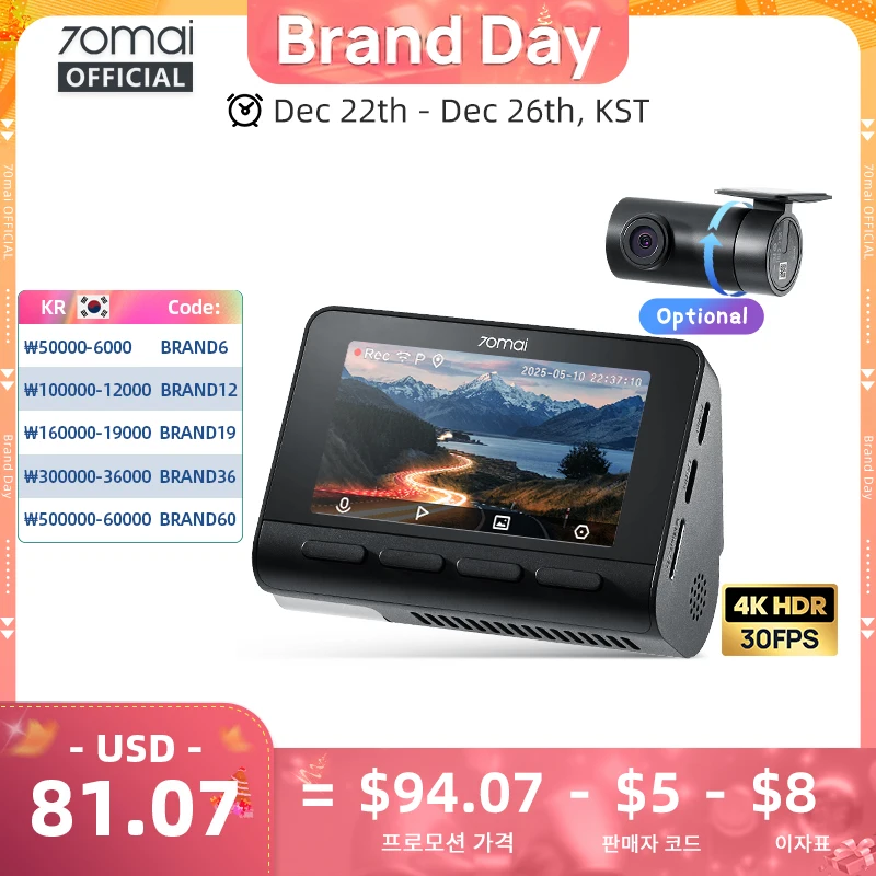 70mai 4K 블랙박스 A800SE 70mai A800S 음성 제어 슈퍼캡타이어 GPS ADAS 차량용 DVR 70mai A800SE UHD Wifi 6 업그레이드 버전