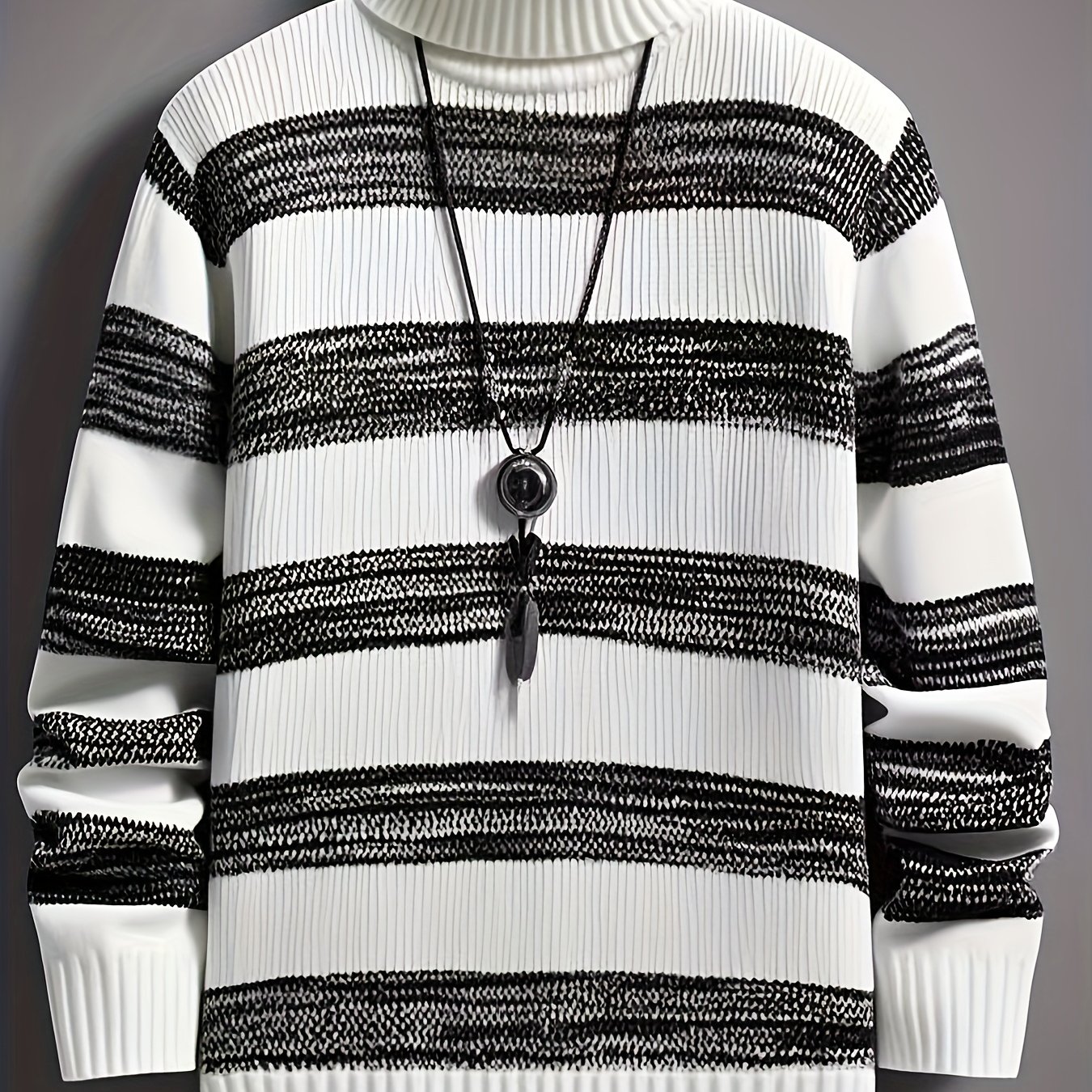 TEMU 가을/겨울용 두꺼운 하이넥 풀오버, 빈티지 스타일 대비 컬러 남성 스웨터 레귤러 핏
