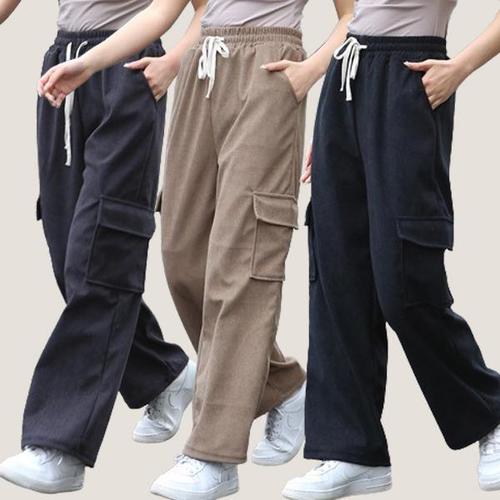 [기모버전] 2종세트 남녀 잔골지 와이드팬츠 코듀로이 밴딩바지 F23TP-311s2