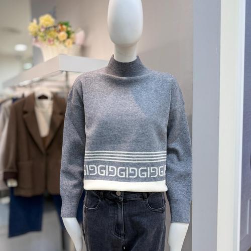[더틸버리]하이넥 자카드패턴 풀오버니트 MTRBM1PO05W_DG