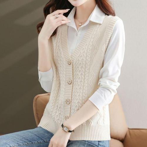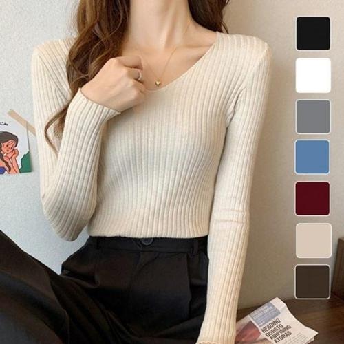 V라인 레이디스뜨개탑 여성 이지 니트상의 니트웨어 8색 WFJIX7Z