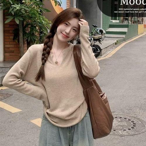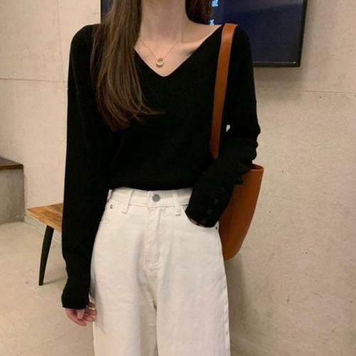 우먼 니트상의 브이라인 여성용스웨터 롱슬리브 데일리룩 상의 WFJIXPW