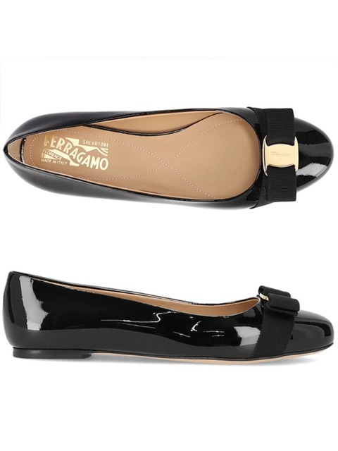 [페라가모] 바리나 발레리나 페이던트 VARINA NERO 574556 여성 유광 플랫슈즈