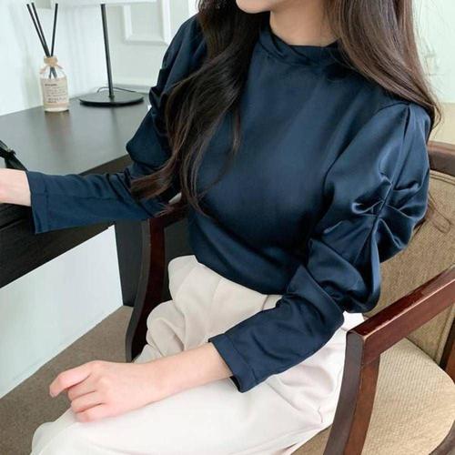 민소매블라우스 샤틴 여성셔츠 타이블라우스 퍼프 (WFKJX6B)