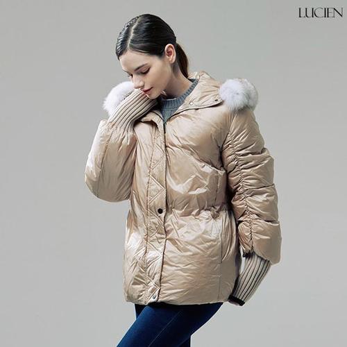 [루시앙]루시앙 여성 구스다운 소매배색 퍼 후드 점퍼_P베이지