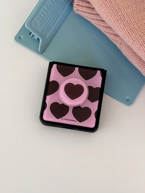 [더나인몰] [set] 하트 패턴 [Z플립 블랙 에폭시 범퍼케이스+에폭시톡]