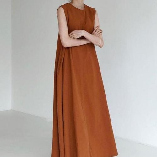 [신상오픈런]여자 무지컬러 히든포켓 A라인 민소매 롱 원피스 (41032760)