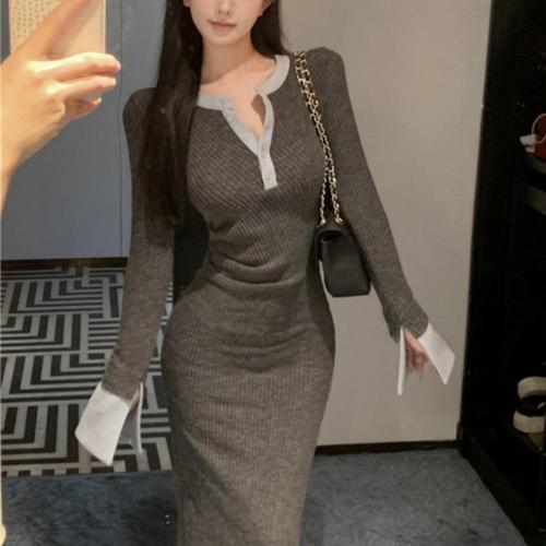 [오너클랜]인기상품 여성 오버 핸드 골지 슬림핏 A라인 주름 긴팔 원피스 [WFJG2Y3_251108]