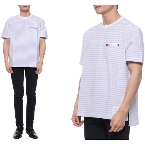 [톰브라운]23SS 남성 스트라이프 포켓 반팔티셔츠 (MJS205A J0053 452 23S)