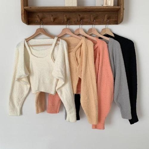 [신상오픈런]|CSD205A|여자 라운드넥 세미크롭 포근 나시 가디건 세트_18314993_597559