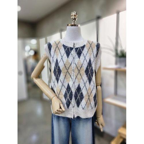 갤러리아_ABFZ[3컬러]넥라운드 마른모 집업 베스트(ABZ4ZV33)