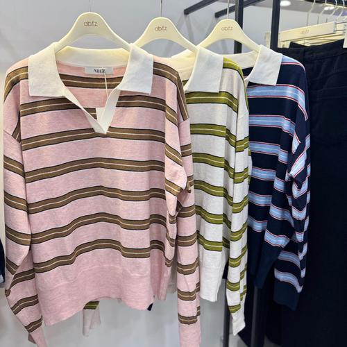 [ab.f.z]abfz카라넥 브이넥 스트라이프 니트 ASFA1HW52Bb