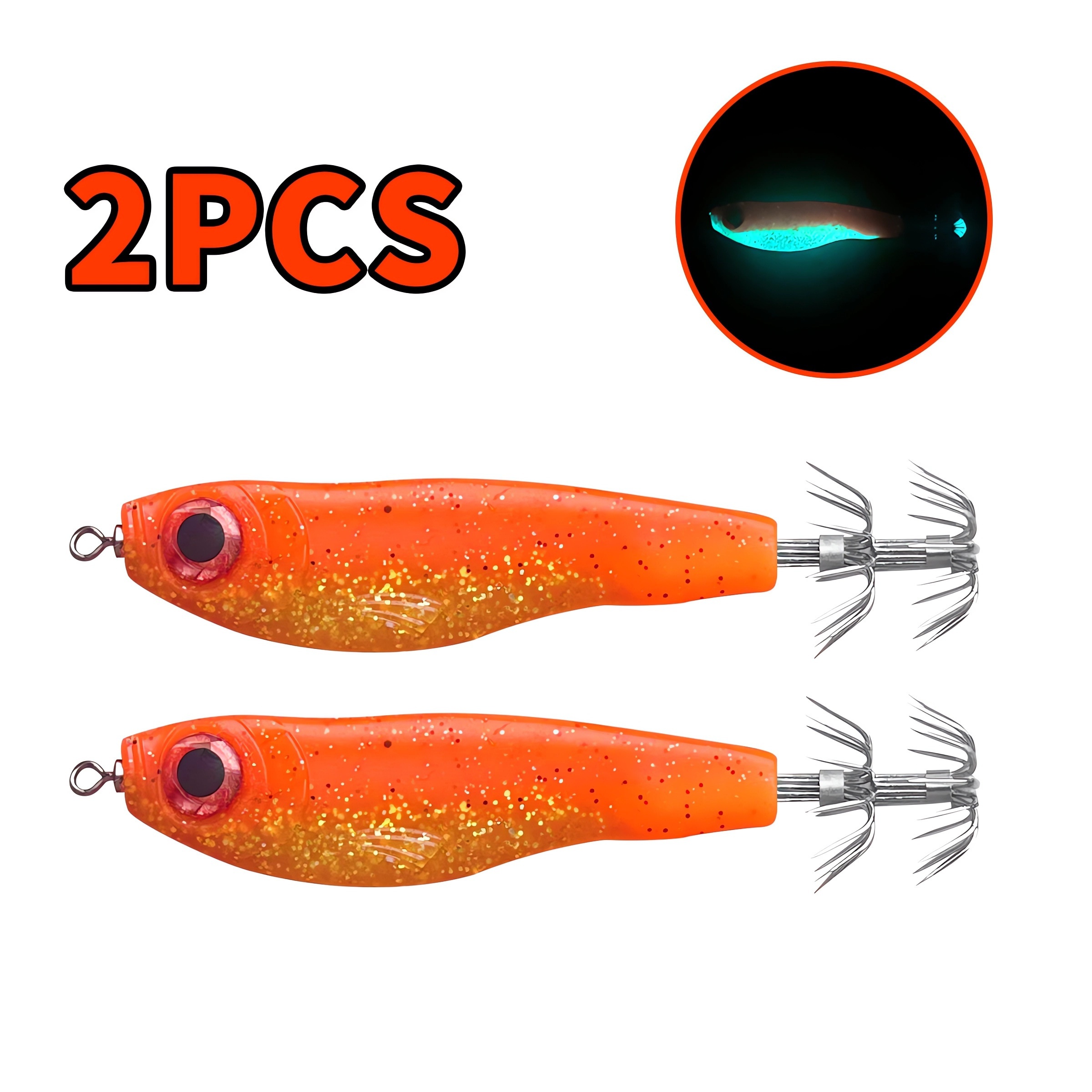 TEMU 전문 낚시 미끼 2개, 형광 소프트 베이트 (더블 우산 후크 포함), 매우 현실적이고 걸림 방지 기능, 물고기 유인에 효과적, 문어, 문어, 문어 및 기타 척수류를 위한 야간 낚시에 적합