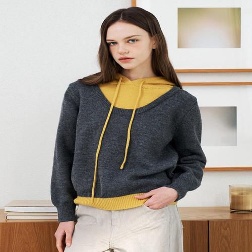 [비엔엑스]투톤 레이어드 후드 긴팔 니트 (BX4KP045L0)