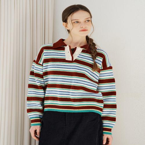 [비엔엑스]스트라이프 배색 카라 하프 버튼 니트 (BX4KP044L0)