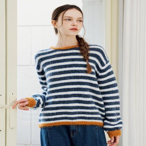 [비엔엑스]라운드넥 스트라이프 배색 니트 (BX4KP042L0)